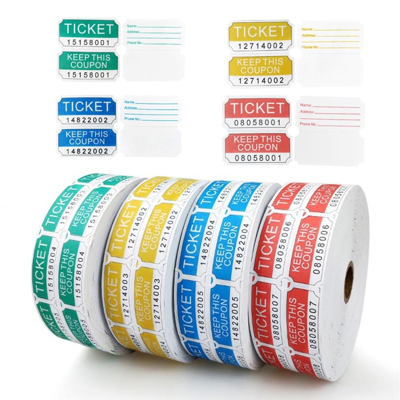 ม้วนตั๋วหมายเลขลำดับ 2000 แผ่นต่อม้วน กระดาษออฟเซ็ต รับทำสีและโลโก้ตามสั่ง ตั๋วจับฉลาก ตั๋วรางวัล