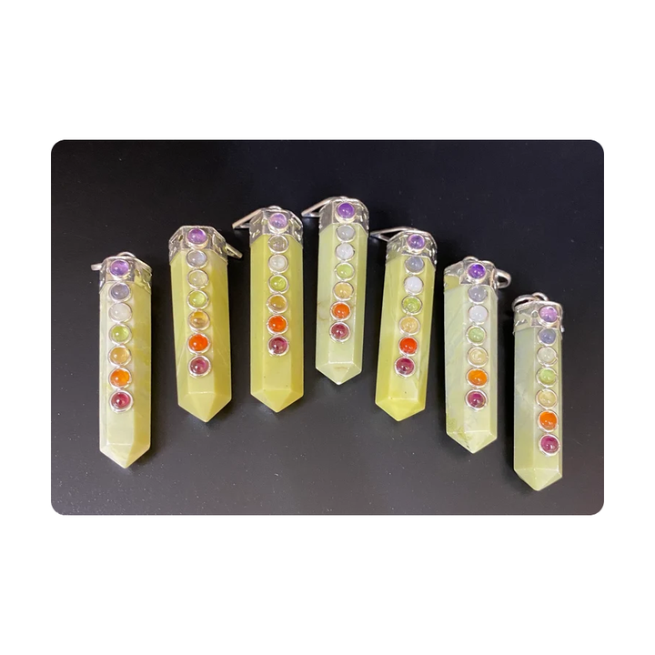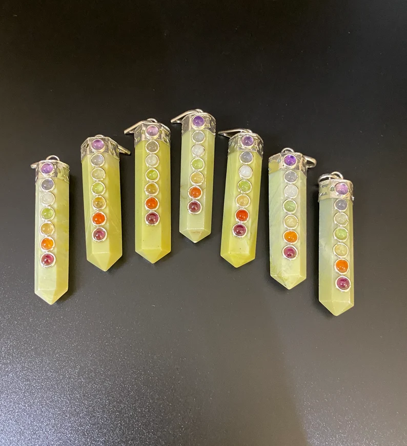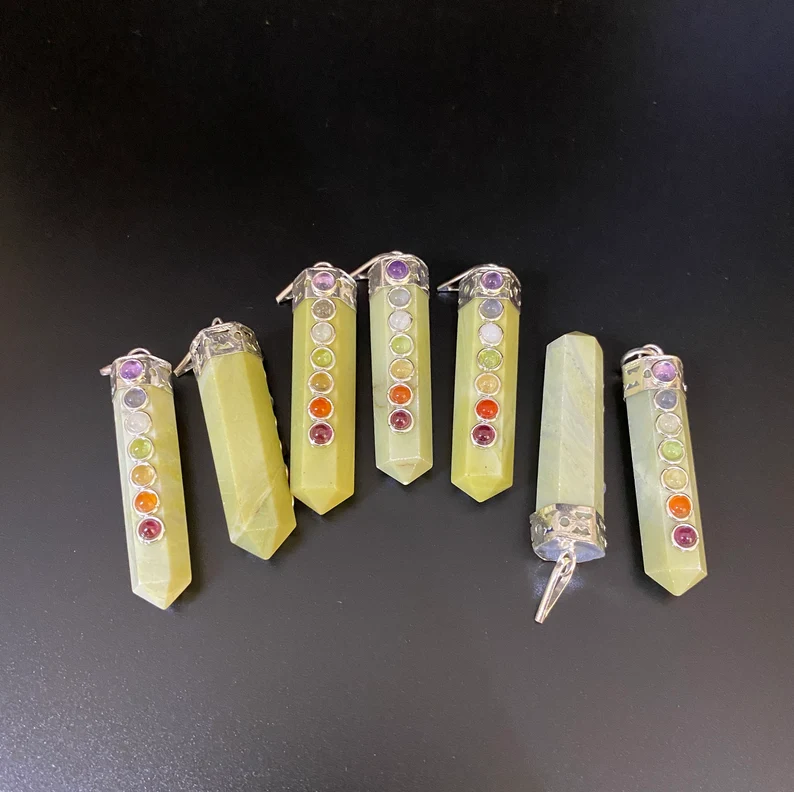 Wholesale Serpentine Seven Chakra Pencil Pendant Necklace Natural Agate Healing Crystal Polished Gemstone Home Decoration Love