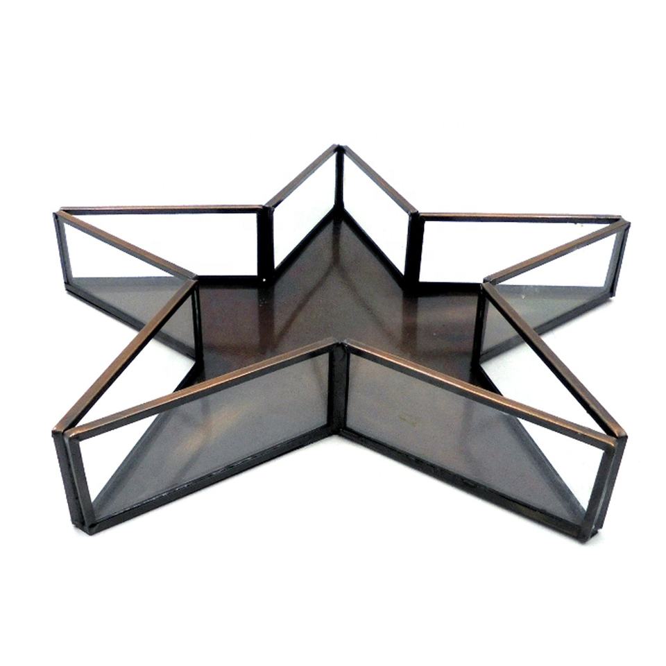 แก้วและเหล็กรูปดาวถาดตกแต่งชุบทองแดงจานสำเร็จรูปและจานสำหรับเสิร์ฟแฮนด์เมด