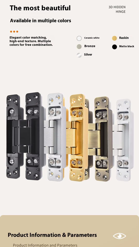 บานพับประตูปรับได้ อายุการใช้งานยาวนานกว่าหนึ่งแสนครั้ง ขนาด 198x30 มม. สีดำ บานพับไฮดรอลิกแบบซ่อน 3 มิติ บานพับโลหะผสมสังกะสี
