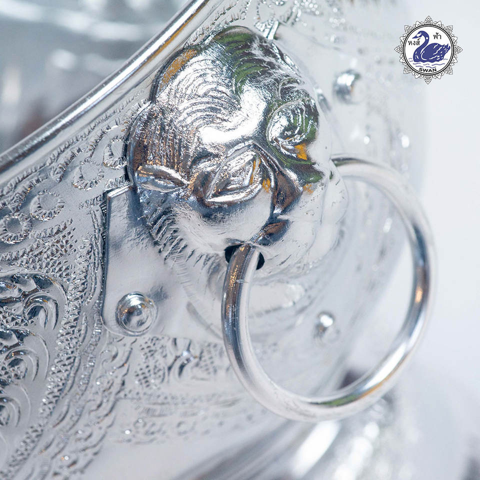 ถาดเสิร์ฟรูปหัวสิงโตอลูมิเนียมสีเงินมีหลายขนาดสำหรับอุปกรณ์เสริมของพระพุทธศาสนานำเข้าจากประเทศไทย