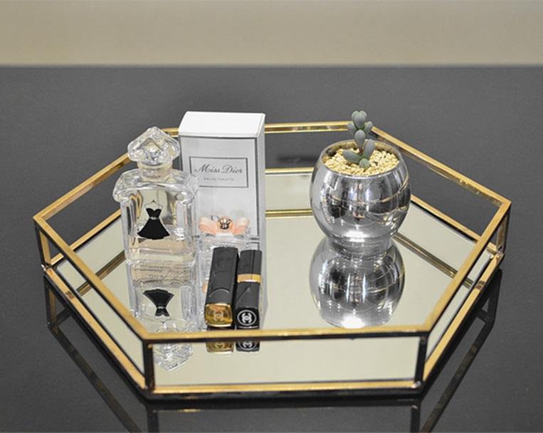 ถาดกระจกแต่งหน้าสำหรับโต๊ะเครื่องแป้ง,ถาดสีเงินตกแต่งชิ้นกลางโต๊ะ