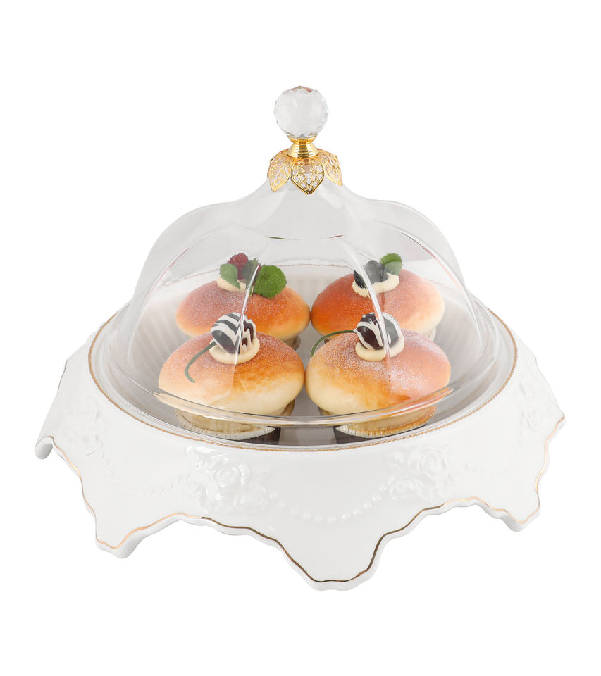 ถาดเสิร์ฟพร้อมฝาครอบใส วัสดุทำจากกระเบื้องเนื้อละเอียดคุณภาพสูง ดีไซน์หรูหราทันสมัย