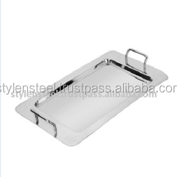 ถาดเสิร์ฟพร้อมหูจับ,จานอาหารค่ำถาดเสิร์ฟอาหารทรงสี่เหลี่ยมผืนผ้าชุดจานสเตนเลส