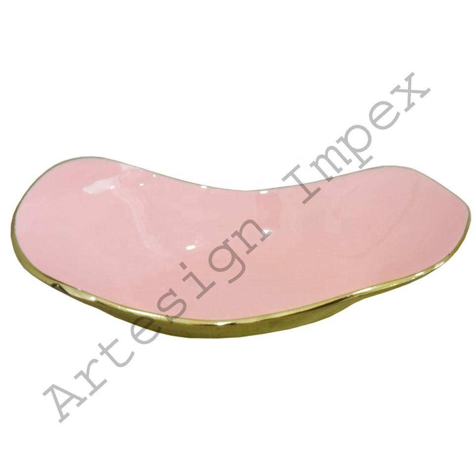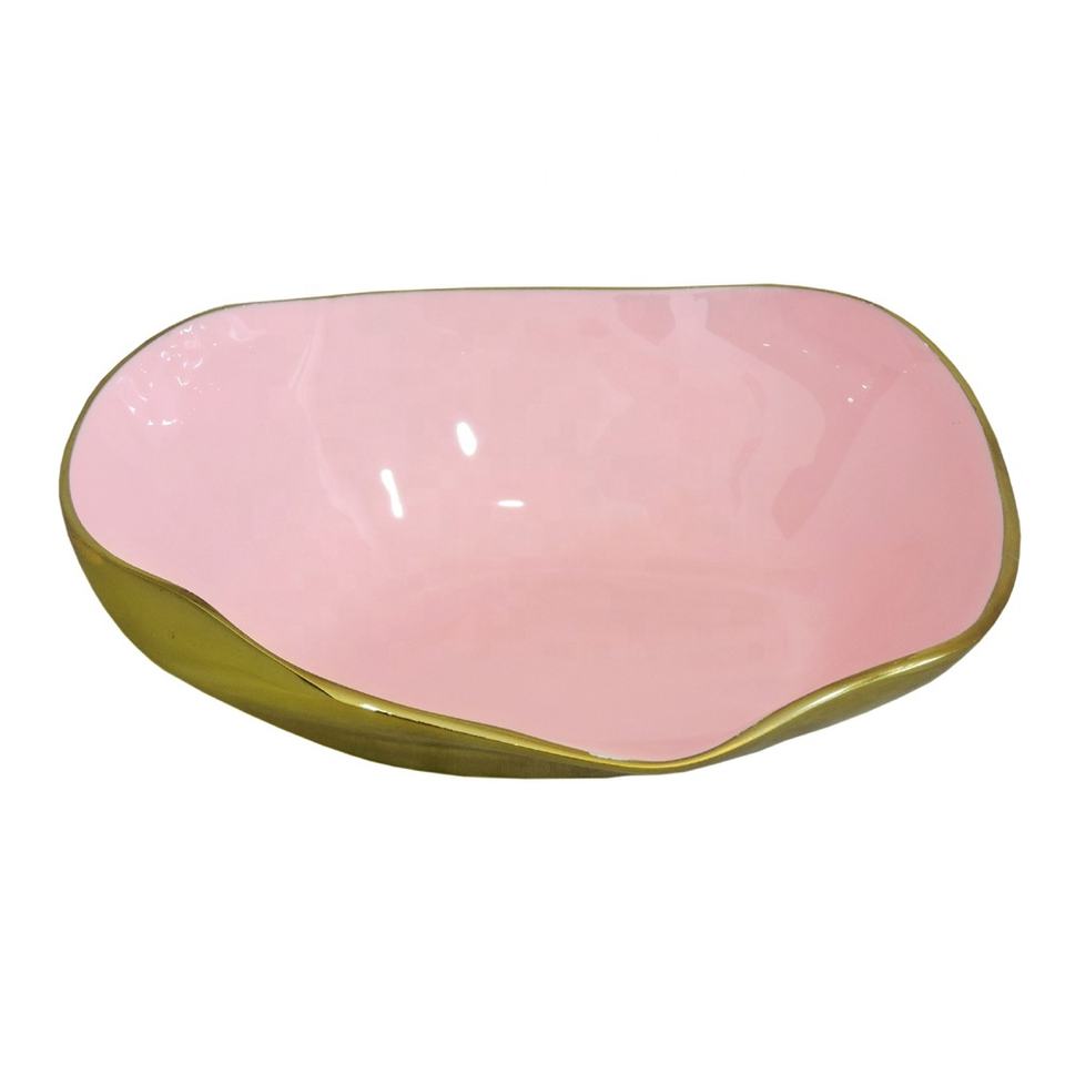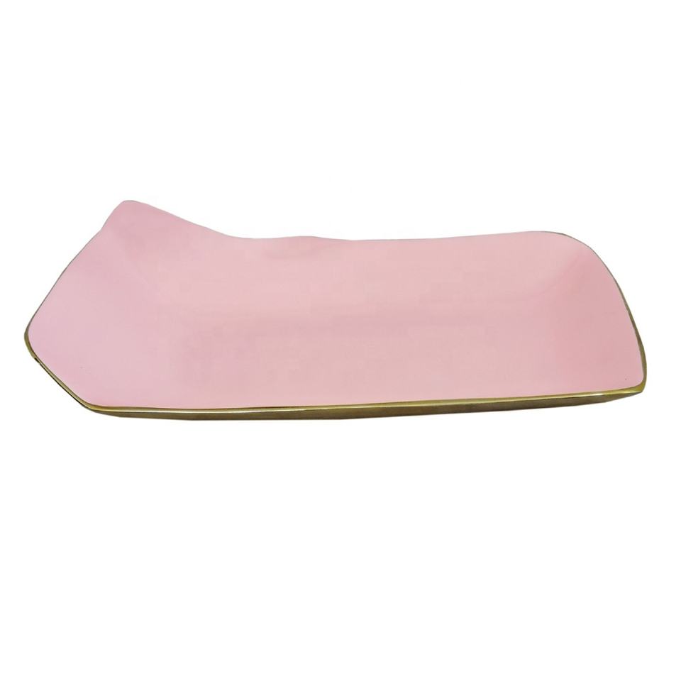 ถาดเสิร์ฟเคลือบสีชมพูอ่อนและสีทองอะลูมิเนียมคุณภาพสูงแบบขายส่งและสั่งทำได้ สำหรับใช้ในบ้านและโรงแรม