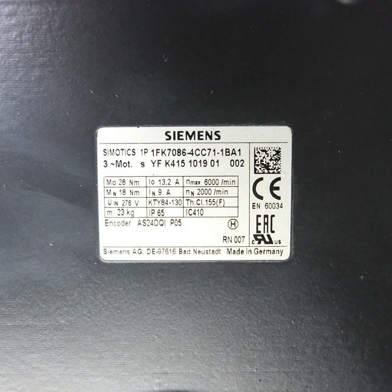 มอเตอร์เซอร์โวสำหรับบรรจุภัณฑ์งานไม้และงานโลหะ1FK7086-4CC71-1BA1 1FK7 SIEMENS มอเตอร์ AC