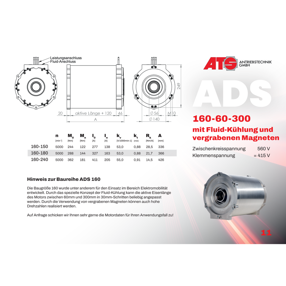 Servomotor Series ADS 160 (IPSM) Electric Motors with Fluid-Cooled Housing