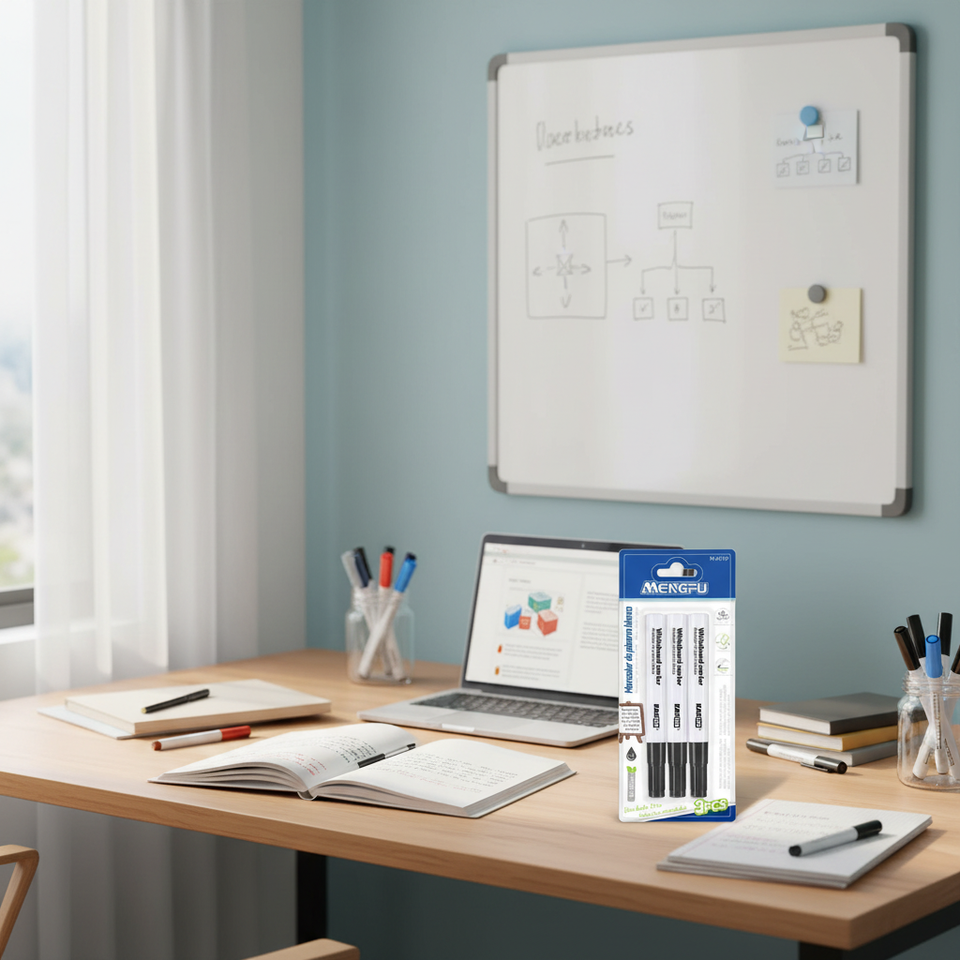 ชุดปากกาไวท์บอร์ด 10 ด้าม/กล่อง ปลอดสารพิษ กลิ่นน้อย สีดำ สำหรับสำนักงาน โรงเรียน ขายส่ง ยี่ห้อ Mengfu รุ่น M-0159 ผลิตในประเทศจีน