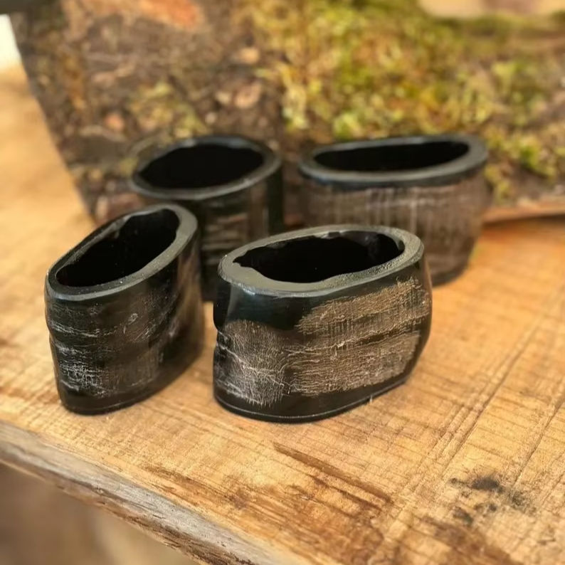 Set 2 Elegant Animal-Style Horn-Wrapped Beer Wine Glasses Eco-Friendly Polished Real Horn Shot Glasses Viking Natural Crafts