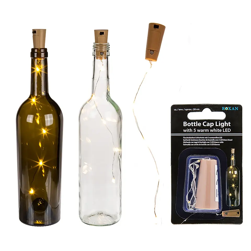 ชุดไฟประดับ 2 เส้น แต่ละเส้นมีไฟ LED 5 ดวง สีวอร์มไวท์ สำหรับใช้ภายในอาคาร IP65 พร้อมจุกขวด สำหรับตกแต่งวันวาเลนไทน์ คริสต์มาส ฮาโลวีน