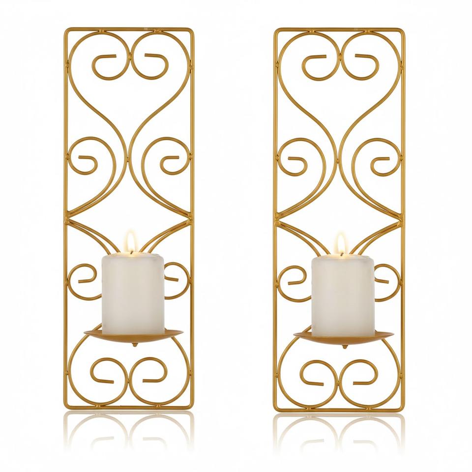 ชุดเชิงเทียนติดผนังโลหะสีทอง 2 ชิ้น ดีไซน์ทันสมัย เป็นมิตรกับสิ่งแวดล้อม เหมาะสำหรับตกแต่งคริสต์มาส ทำจากเหล็ก แขวนติดผนัง