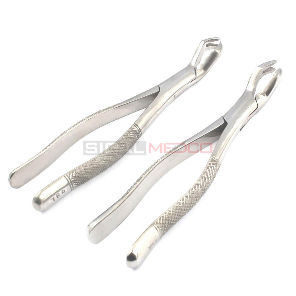 ชุดคีมดึงรากฟันแบบแมนนวล2ชิ้น # 88L # 88R เครื่องมือดึงฟันแบบพรีเมี่ยมทำจากสเตนเลสของเยอรมันสำหรับฟันกรามบน