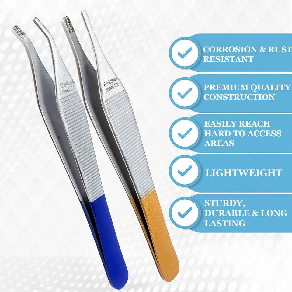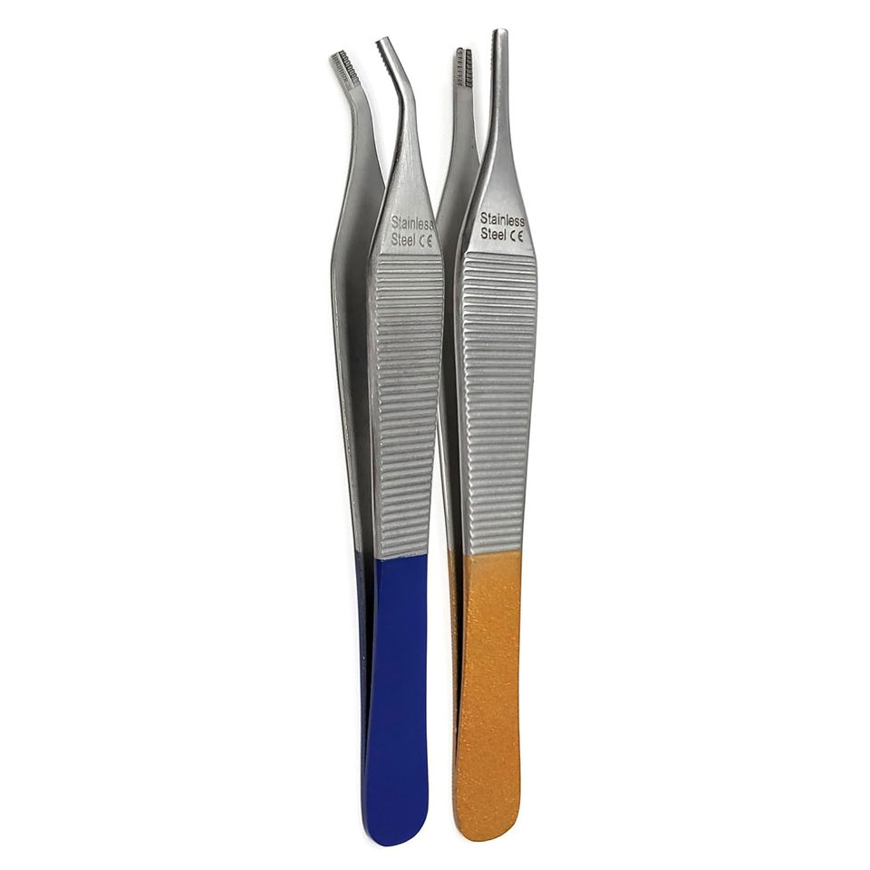 ชุดคีมผ่าตัดอัดสัน 2 ชิ้น คุณภาพพรีเมียม เกรดทางการแพทย์ ทำจากเหล็กกล้าไร้สนิม 11 นิ้ว แบบตรงและแบบโค้ง พร้อมรหัสสี แบบใช้มือ สีน้ำตาล