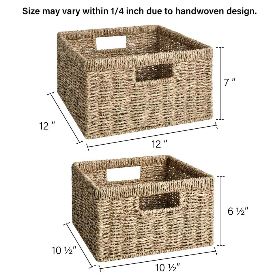 ชุดตะกร้าหวายทะเลสำหรับเก็บของ 2 ใบ:ขนาด: L: กว้าง 12 x สูง 7 นิ้ว M: กว้าง 10.5 x สูง 6.5 นิ้ว