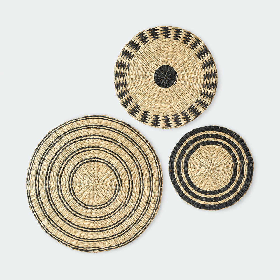 ชุดแจกันผนังหญ้าทะเลวงกลมสีดำ3อันชุดหวายสไตล์สแกนดิเนเวียนโบฮีเมียนดีไซน์แบบศูนย์กลางเป็นมิตรกับสิ่งแวดล้อมสำหรับร้านอาหารบ้าน