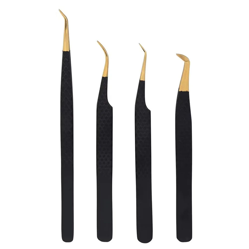 Set 4 Diamond Grip Anti-Static Custom Logo High Quality Stainless Steel Smooth Tip Eyelash Tweezers Precision Durable Salon Use