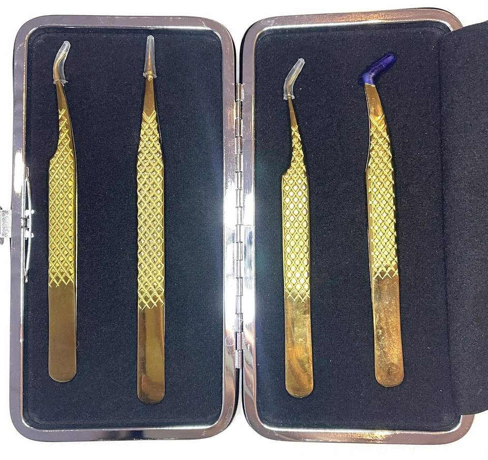 ชุดที่หนีบขนตาปลอมสำหรับมืออาชีพคุณภาพสูง4ชิ้นดีไซน์ให้คงทนทำจากสเตนเลสสตีลมีปลายแหลม