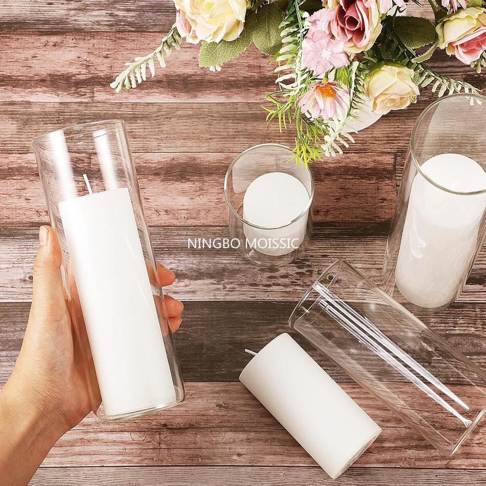 ชุดเชิงเทียนสีขาว 4 ชิ้น รูปทรงเสา + แจกันทรงกระบอกแก้ว 4 ขนาด ใส ทำด้วยมือ ของตกแต่งบ้าน ผลิตในจีน