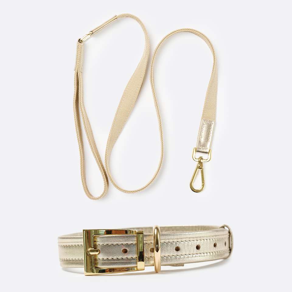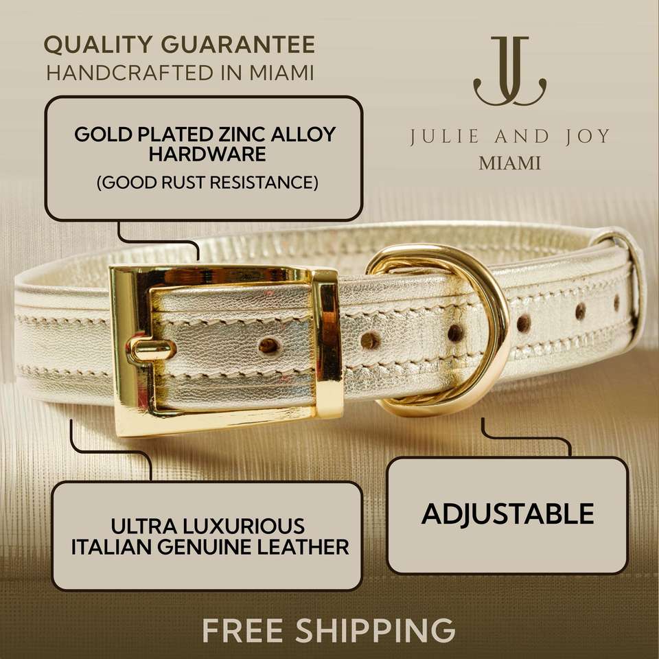 ชุดปลอกคอหนังสีทองอิตาลีและสายจูง fabluc ของขวัญสำหรับคู่รัก-ฮาร์ดแวร์เคลือบทองและปลอกคอสุนัขหนังแท้