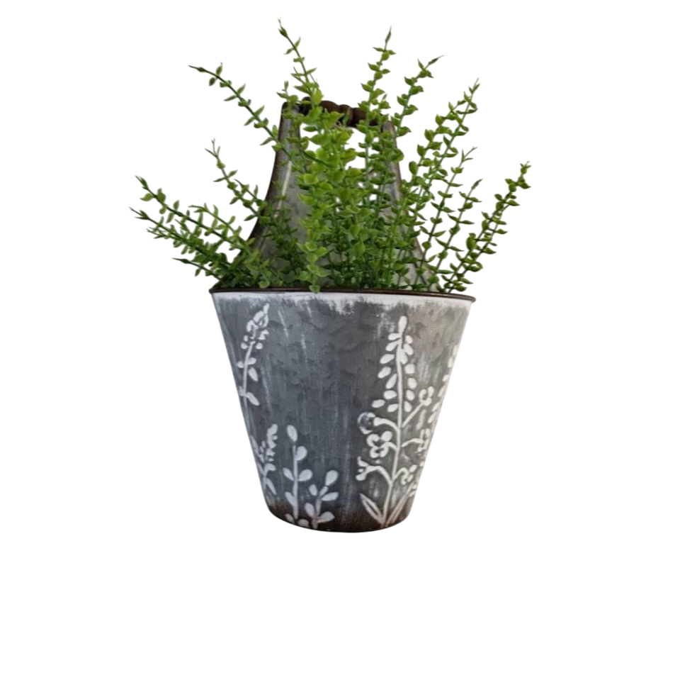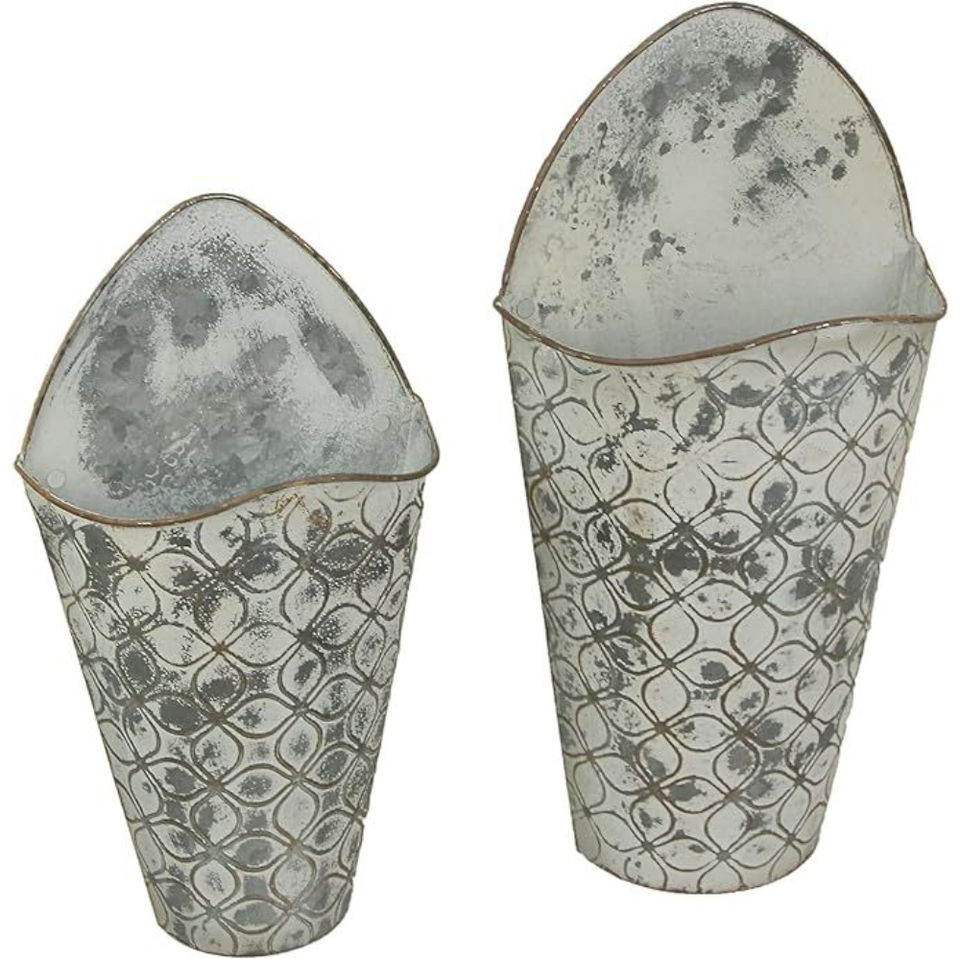 ชุดกระถางต้นไม้ติดผนังโลหะเคลือบสีเทาโบราณลายนูน 2 ชิ้น สไตล์บ้านไร่แบบเรียบง่าย สำหรับตกแต่งภายใน