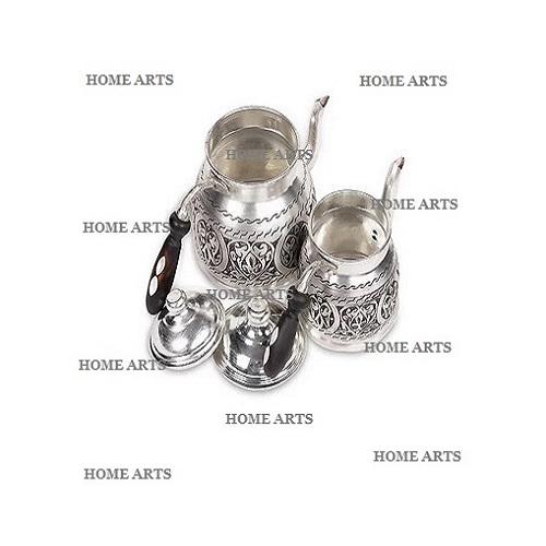 ชุดกาน้ำชาอลูมิเนียมสีเงินพร้อมที่จับไม้ชุด2ขนาดและรูปร่างที่กำหนดเอง