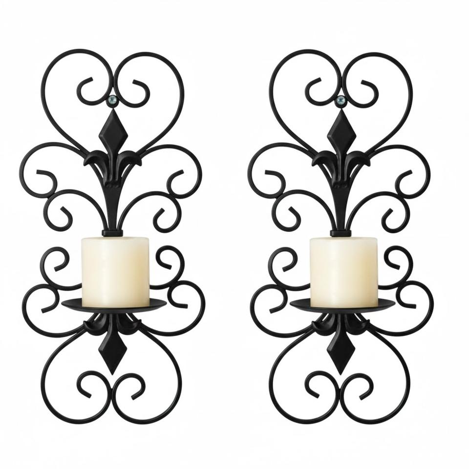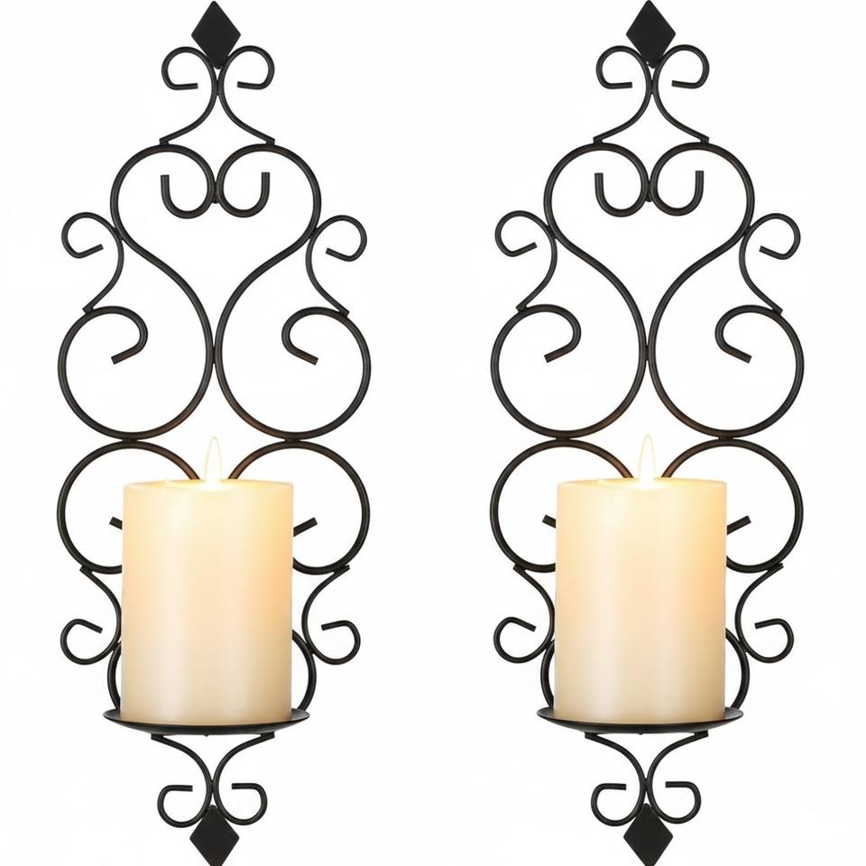 Set of 2 Gold Metal Wall Sconces Iron Candle Holders Modern Design Christmas Home Wedding Decoration Durable