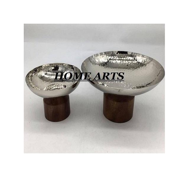 ชุดชามใส่ผลไม้แห้งทองเหลืองตีลาย 2 ใบ พร้อมฐานไม้ คุณภาพเยี่ยม รูปทรงกลม ชามใส่ช็อคโกแลต ขายส่ง