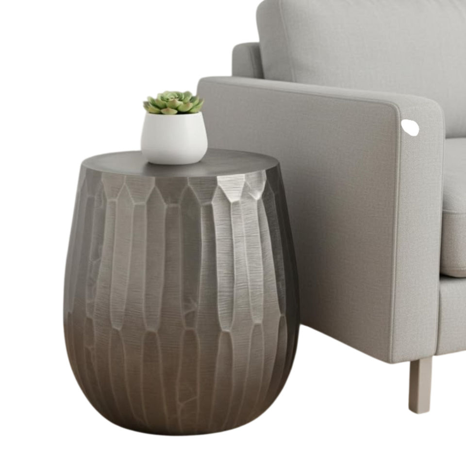 ชุดเก้าอี้เหล็กทำมือ 2 ตัว ตกแต่งด้วยนิกเกิลโบราณ โต๊ะข้างทรงกระบอกพร้อมลายเชฟรอน สำหรับตกแต่งบ้านสไตล์โมเดิร์น