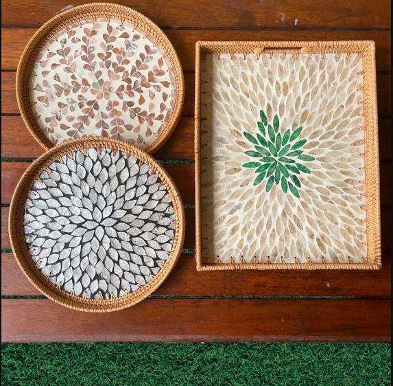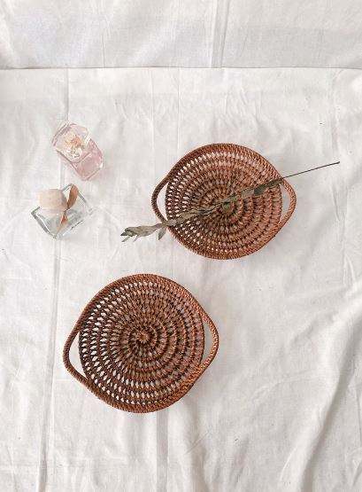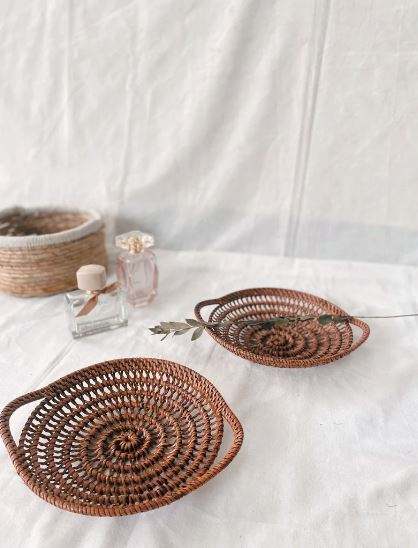 ชุดถาดเสิร์ฟอาหารหวายแฮนด์เมด2ชิ้นถาดเสิร์ฟอาหารรูปร่างและขนาดที่กำหนดเองได้