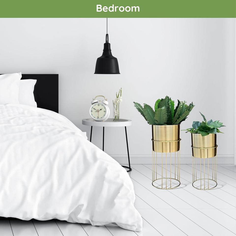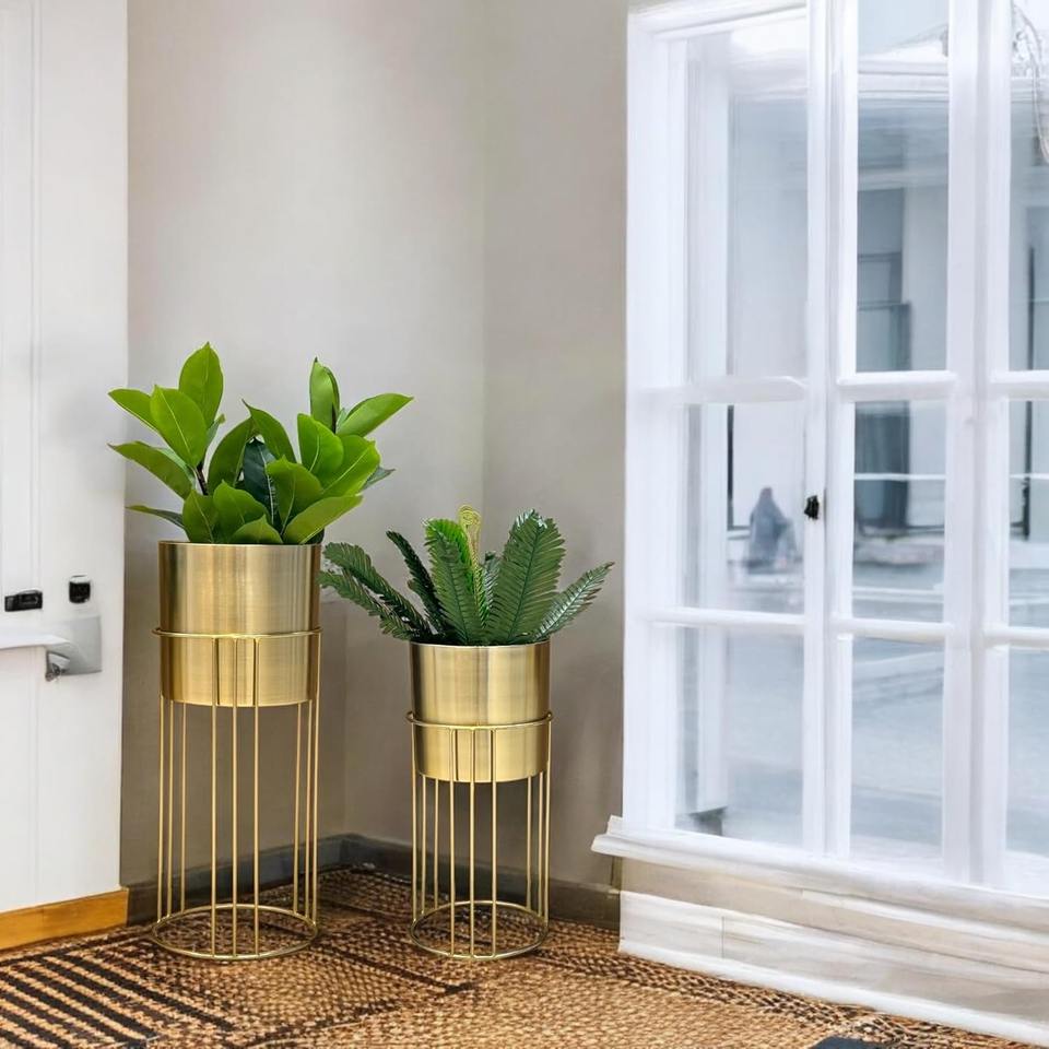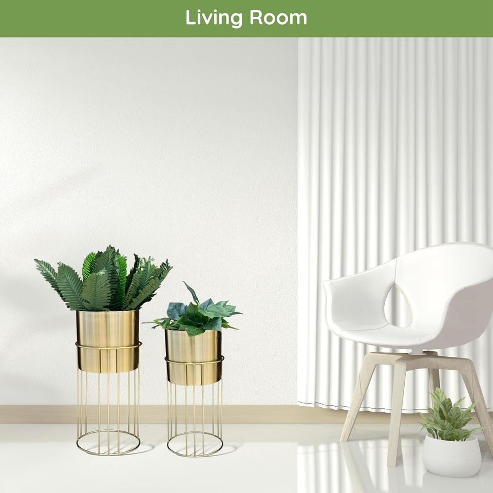 ชุดที่ปลูกต้นไม้ตั้งพื้นทำจากโลหะ2ชิ้นสำหรับตกแต่งบ้านที่ทันสมัยเหมาะสำหรับห้องนั่งเล่นพืชในร่มและพื้นที่ร่วมสมัย