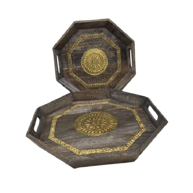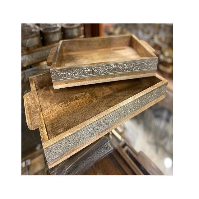 ถาดเสิร์ฟขนมไม้พร้อมชุด2ขนาดถาดเสิร์ฟดีไซน์คลาสสิก