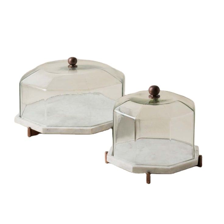 ชุดจานชามทรงแปดเหลี่ยม2ชิ้นพร้อมฝาแก้วหรูหราและฐานหินอ่อนหรูหราพร้อมถาดใส่ขนมหวานทำจากไม้อะคาเซีย