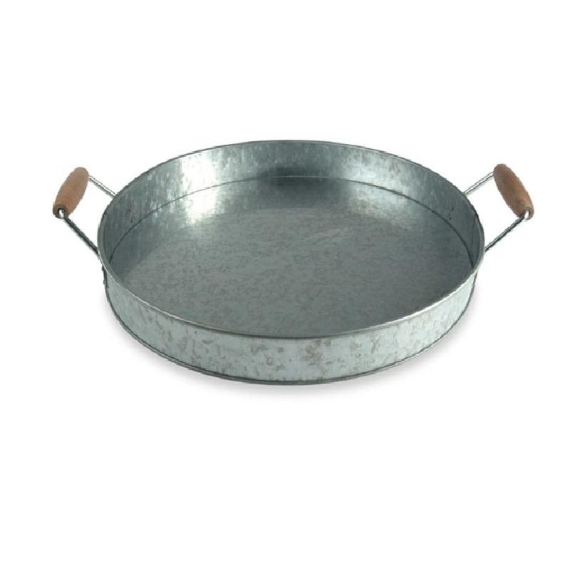 ชุดถาดเสิร์ฟอาหารเหล็กชุบสังกะสีทรงรี2ชิ้นพร้อมด้ามจับถาดเสิร์ฟอาหารบนโต๊ะสำหรับบ้านและโรงแรม
