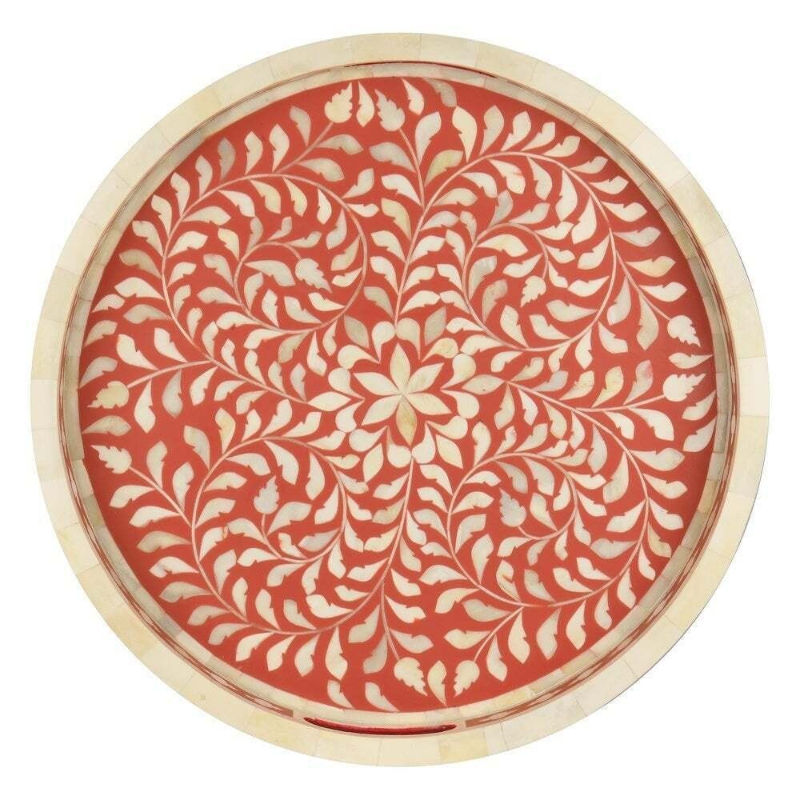 Set Of 2 Pearl Wooden Serving Trays Round Shape For Dining Table Food & Drinks Serving Trays Home & Hotels Supplies