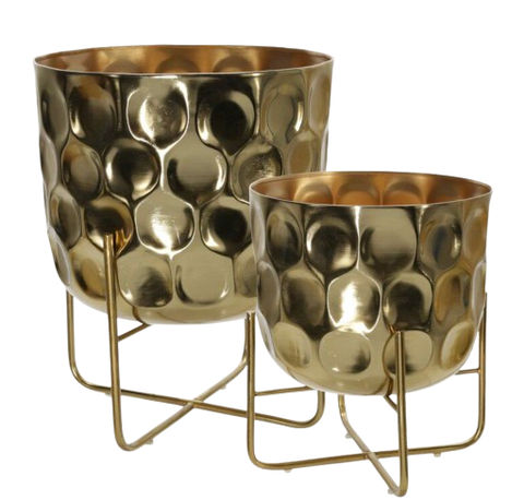 ชุดขาตั้งต้นไม้ 2 ชิ้น ทำจากโลหะ ขาตั้งกระถางต้นไม้สีทอง สำหรับตกแต่งภายในและภายนอกบ้าน สวน
