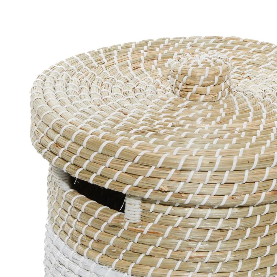 ชุดตะกร้าสานมือจากหญ้าทะเล 2 ใบ สีขาวสองเฉด สำหรับตกแต่งและเก็บของ ขายส่ง เป็นมิตรกับสิ่งแวดล้อม ผลิตในเวียดนาม