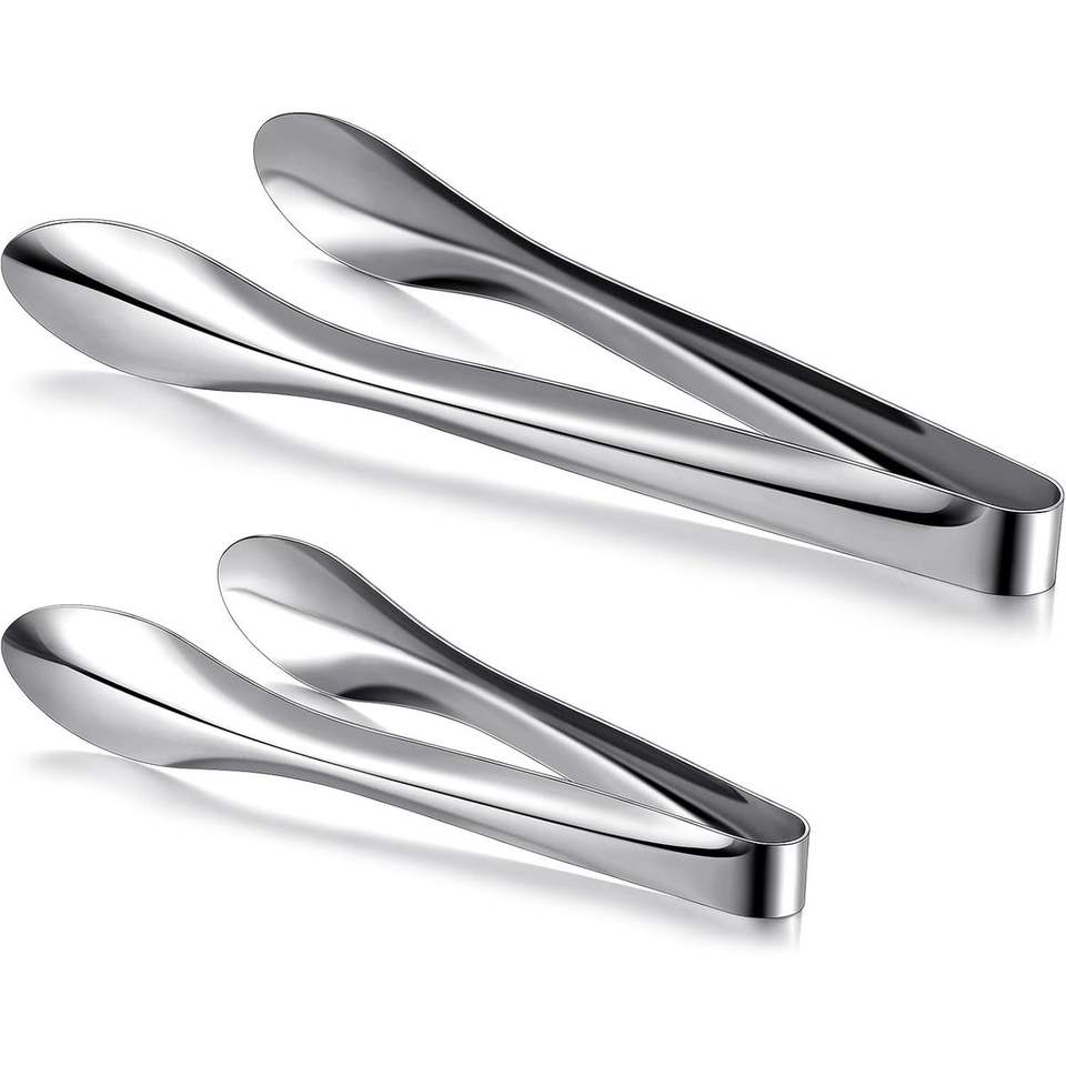 ชุดที่คีบน้ำแข็งสแตนเลส 2 ชิ้น อุปกรณ์ครัวและบาร์ เครื่องมือทำมือ งานฝีมือ ที่คีบน้ำแข็งโลหะเคลือบเงิน