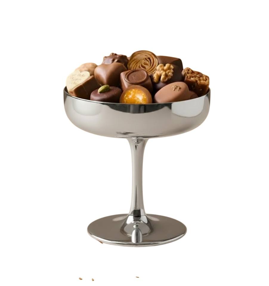 ชุดชามเสิร์ฟสแตนเลส 2 ใบ พร้อมขาตั้งทรงกลม ดีไซน์ทันสมัย ชามโลหะสำหรับใส่ช็อคโกแลต ดีไซน์โดดเด่น ชามใส่ขนมและถั่ว