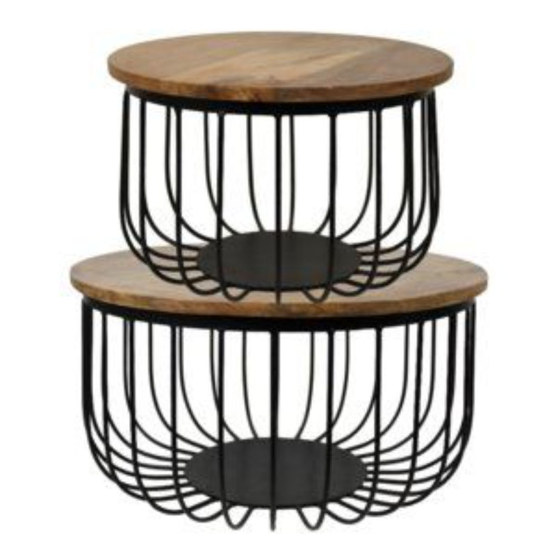 ชุดโต๊ะกาแฟโลหะคุณภาพมาตรฐาน 2 ตัว สำหรับตกแต่งห้องนั่งเล่น สีดำและสีน้ำตาล โต๊ะกลมหรูหราสำหรับวางข้างและกลางห้อง