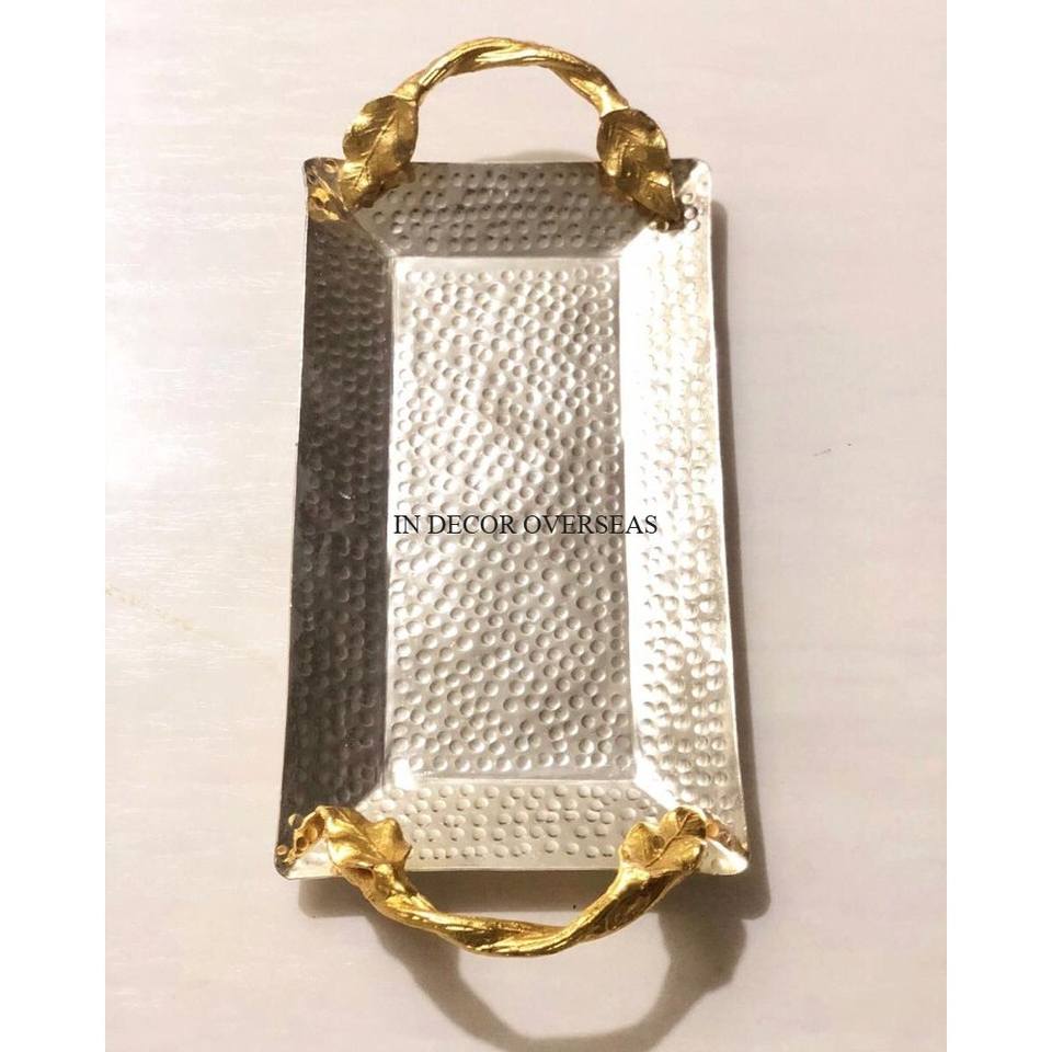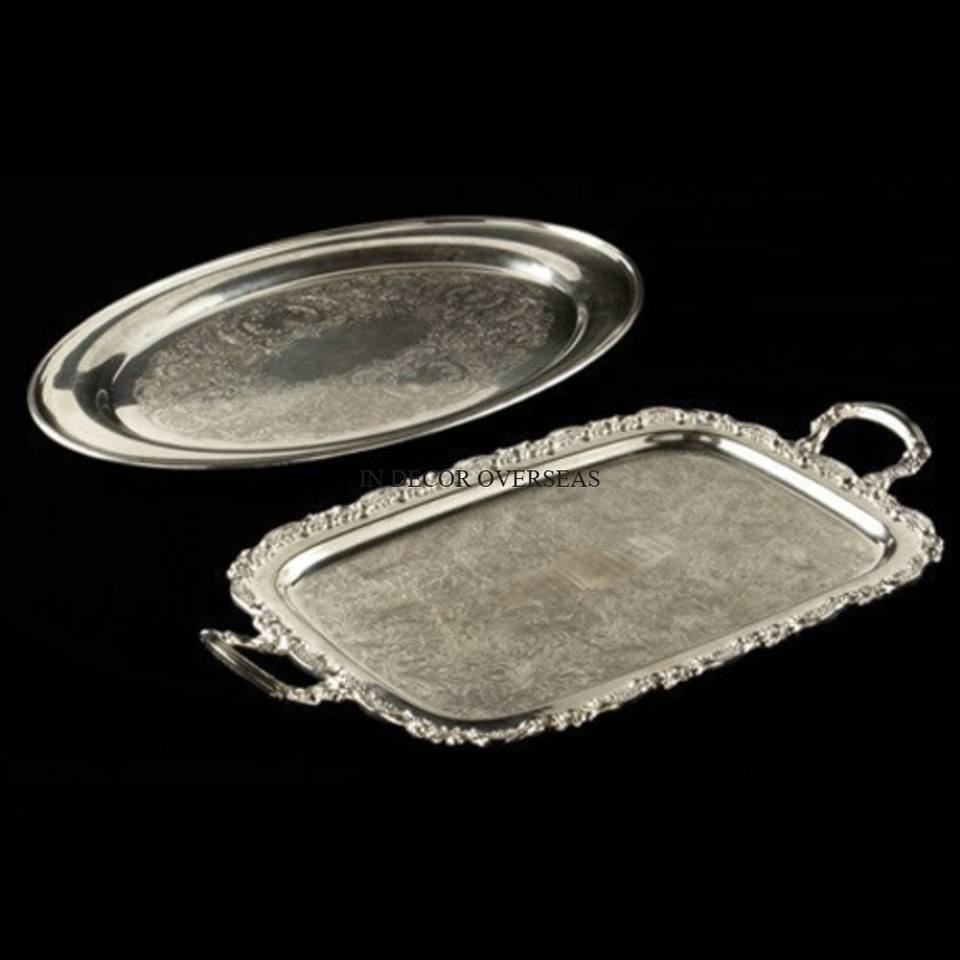 ชุด2ชิ้นถาดวางกลางโต๊ะทำจากโลหะขัดเงามันเงาพร้อมดีไซน์แฟนซีอันเป็นเอกลักษณ์สำหรับเสิร์ฟผลไม้และขนมหวาน