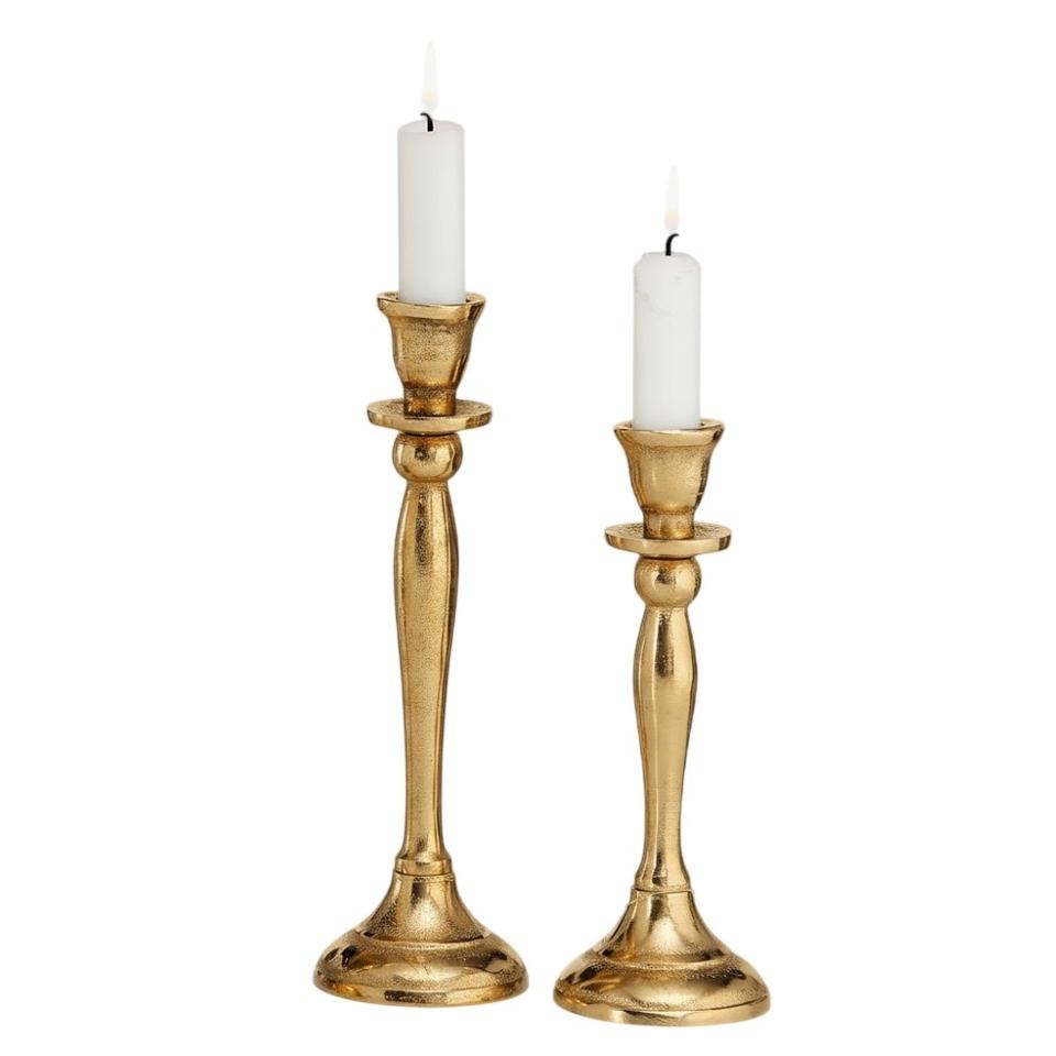 ชุดเชิงเทียนทองเหลืองโบราณโบราณ2ชิ้นเชิงเทียนโลหะทองแท่งเทียนสำหรับตกแต่งบ้าน