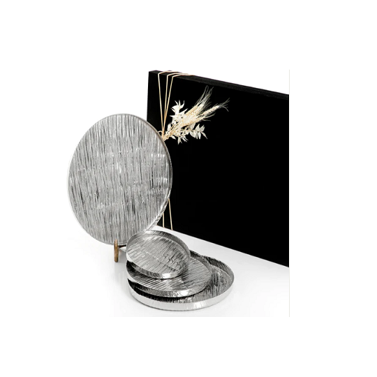 ชุดจานอลูมิเนียมสำหรับเสิร์ฟอาหาร3ชิ้นดีไซน์คลาสสิกขนาดแตกต่างกันจานเสิร์ฟของหวาน