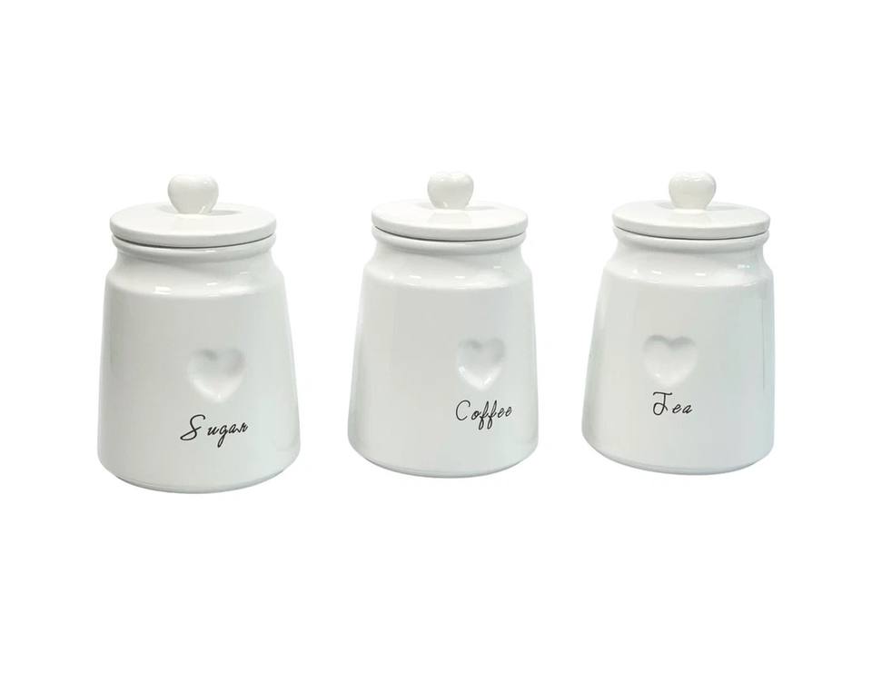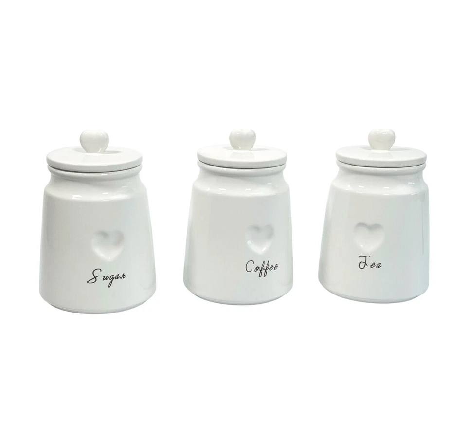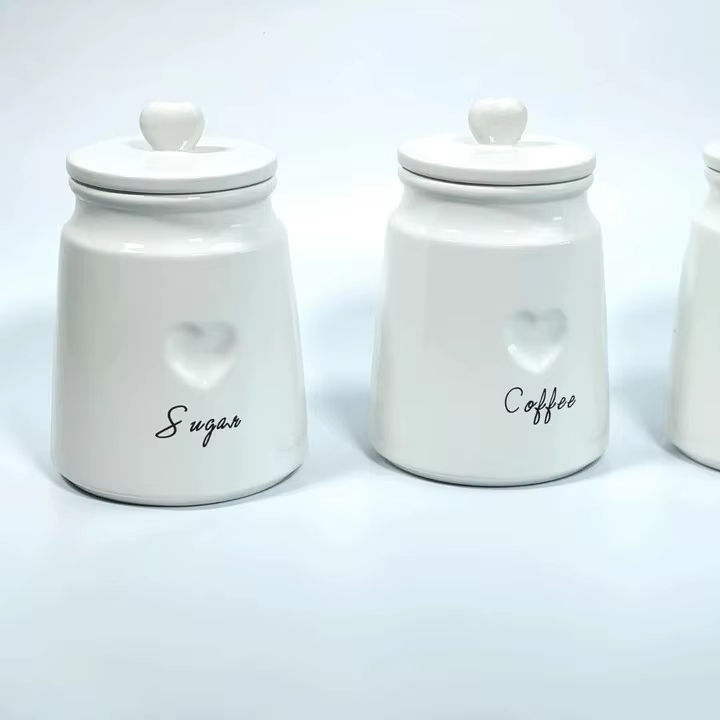 ชุดโหลเซรามิก 3 ใบ พร้อมฝาปิด สำหรับเก็บน้ำตาล กาแฟ ชา ภาชนะเก็บอาหารแบบสุญญากาศ ปลอดภัยสำหรับอาหาร ดีไซน์สวยงาม ใช้จัดระเบียบเคาน์เตอร์ครัว