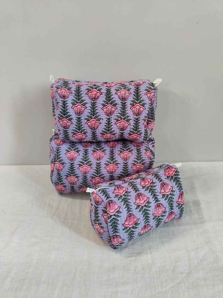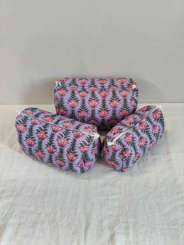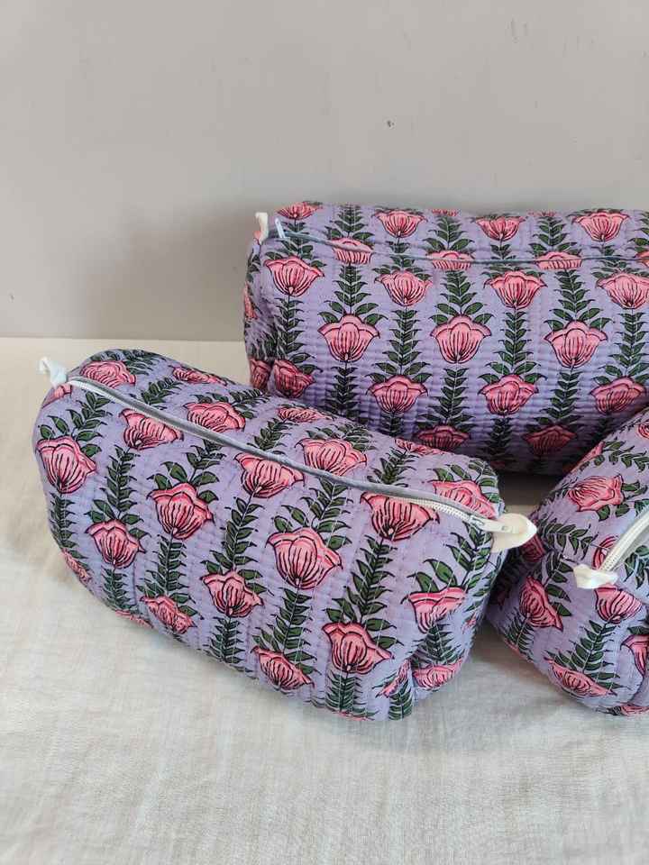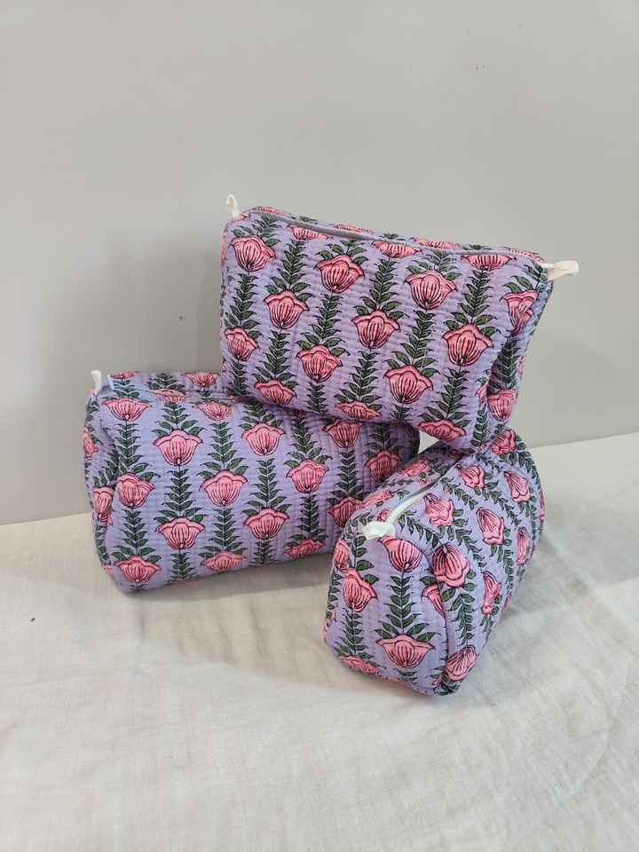 ชุดกระเป๋าเครื่องสำอางผ้าฝ้ายลายดอกไม้ 3 ใบ พร้อมกระเป๋าจัดระเบียบอุปกรณ์อาบน้ำสำหรับเดินทาง