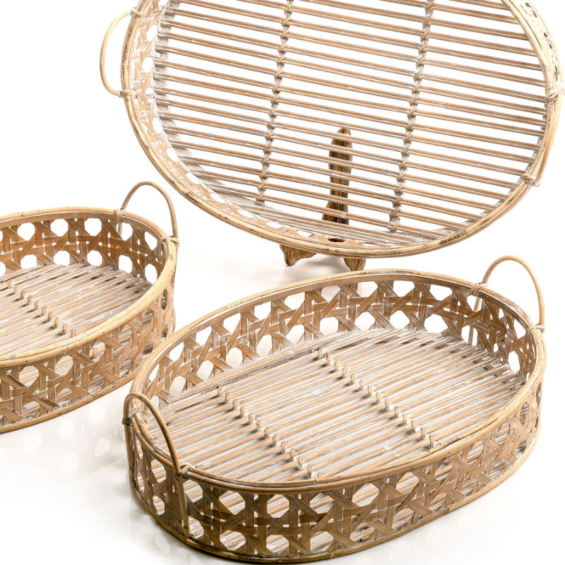 ชุดถาดอาหารหวายรูปไข่3ขนาดถาดเสิร์ฟของหวานทำด้วยมือทำจากไม้คุณภาพระดับพรีเมียม