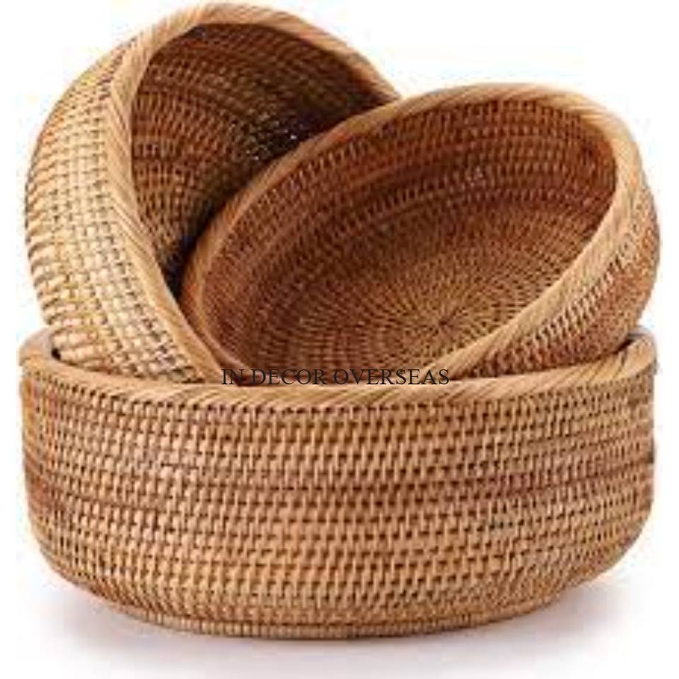 ชุดตะกร้าหวายสำหรับใส่อาหารทรงกลมและของอื่นๆ3ชิ้นอุปกรณ์เครื่องครัวสำหรับใช้ในบ้านและโรงแรม