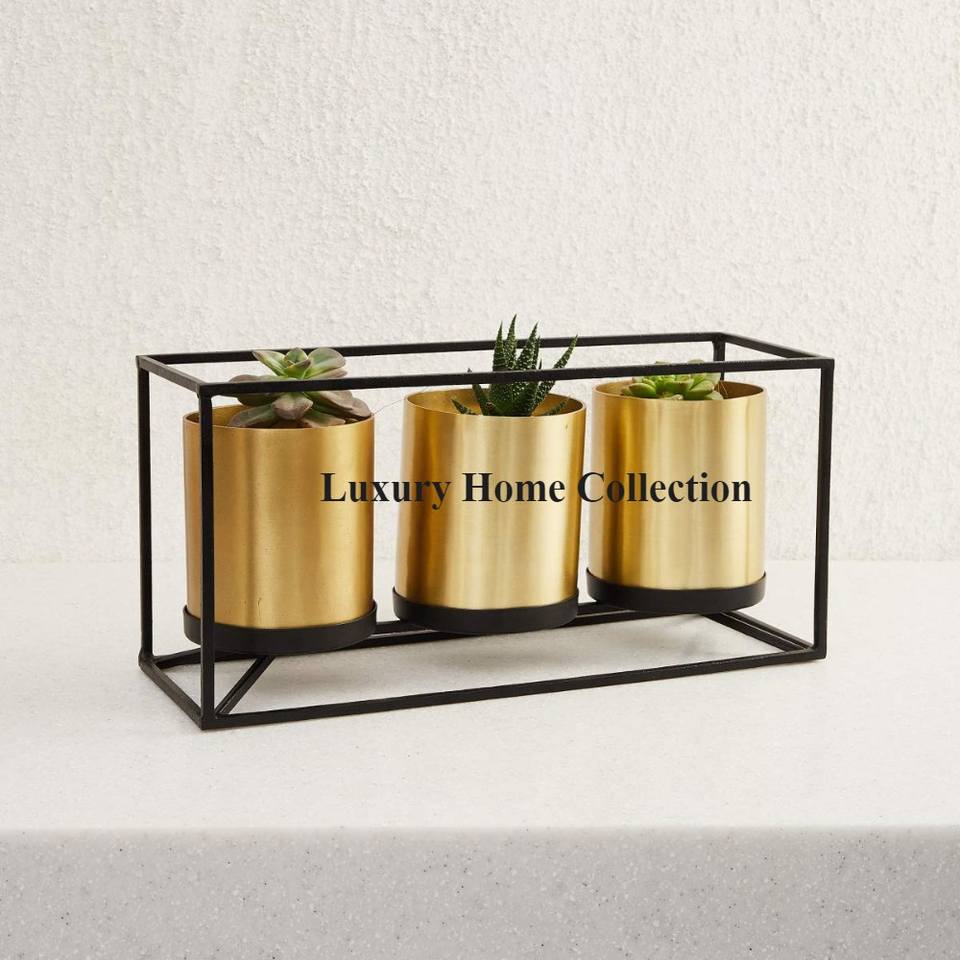 ชุด3สีทองเงางามดีไซน์โบราณกระถางกระถางและอุปกรณ์จัดระเบียบ