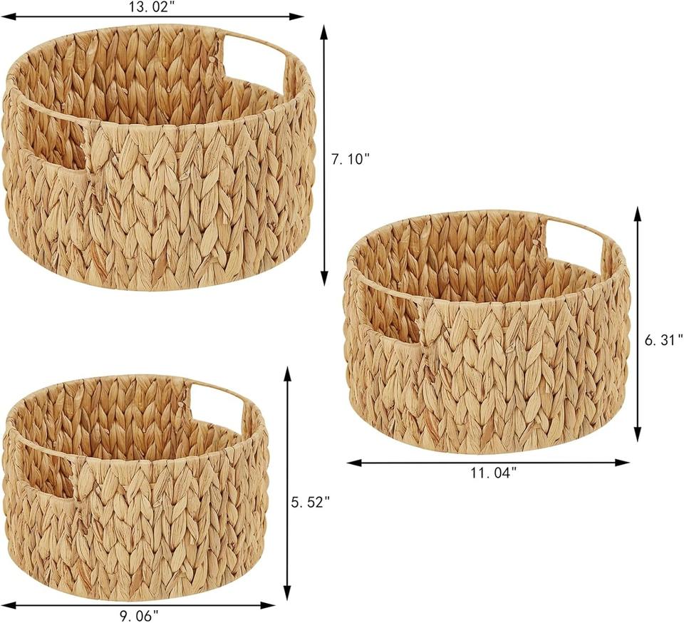 ชุดตะกร้าสานมือจากผักตบชวา 3 ใบ ขนาดใหญ่ ทรงกลม พร้อมหูหิ้ว ตะกร้าเก็บของทำมือ ขายส่ง เป็นมิตรกับสิ่งแวดล้อม ผลิตในเวียดนาม