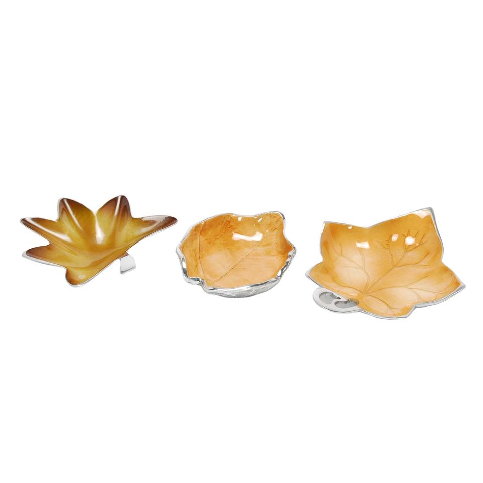 ชุด3ชามรับประทานอาหารเคลือบทองอินเดีย3ใบถาดรับประทานอาหารอลูมิเนียมรูปทรงใบไม้/จานสำหรับตกแต่งโต๊ะในบ้านของขวัญธุรกิจวัตถุประสงค์