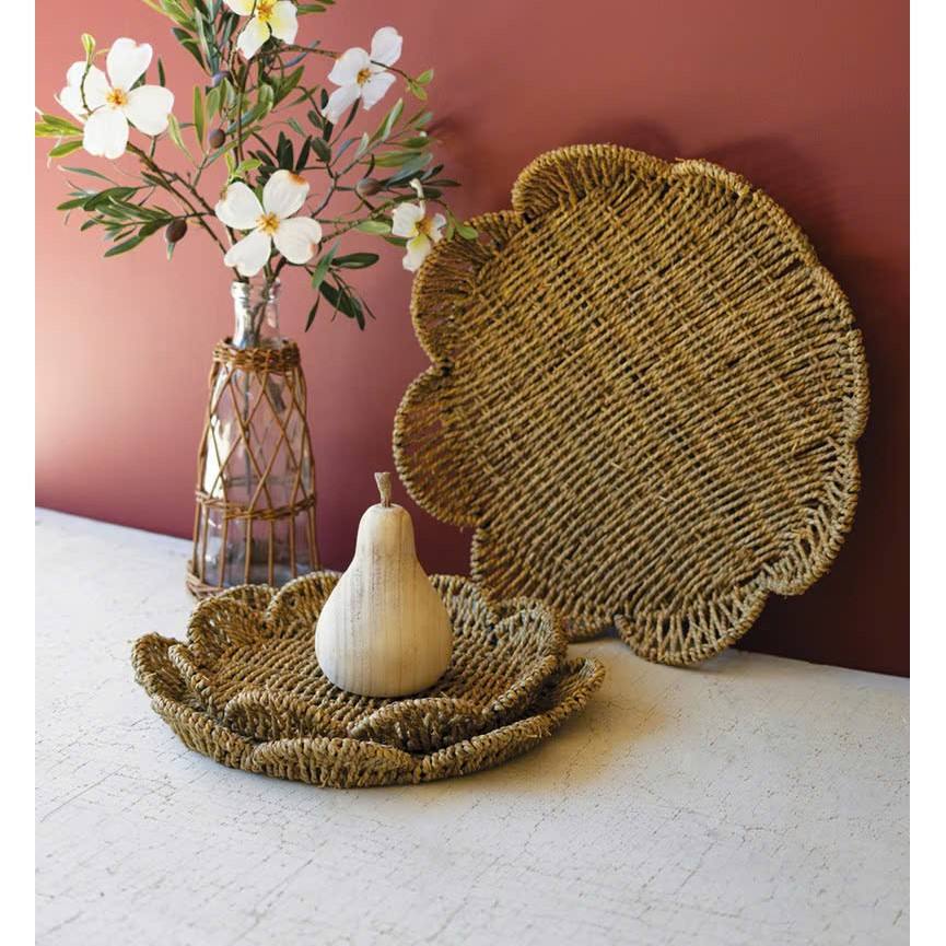 ชุดถาดเสิร์ฟหญ้าทะเลสานหอยเชลล์3ชิ้นตกแต่งโต๊ะรับประทานอาหารและเครื่องครัวถาดธรรมชาติผลิตจากเวียดนาม
